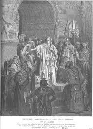 Ele não havia contado com uma rainha cheia de propósito. Uma aparição ordenada frente a 10 mil bêbados grosseiros era insulto suficiente, mas ela tinha um pressentimento de que o rei queria exibir todos os seus encantos (A lei persa também estava do seu lado; mesmo a mais insignificante olhada de relance de um estranho para a mulher de alguém, sem falar da primeira-dama, era um tabu). De qualquer modo, Vashti disse: "De jeito nenhum!"